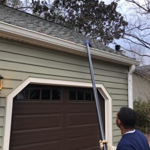 We don't stomp around on your roof in order to access the various gutters to clean them. Gutters that are really hot or really cold can be very easily damaged. Shingle granules can come off and shingles themselves can rip under the weight of someone walking on the roof.